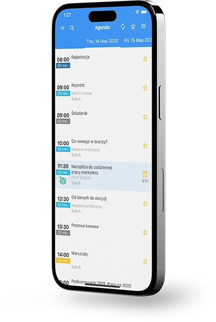 Nie przegap niczego! Miej przy sobie dostęp do agendy, konkursów, rozkładu stolików i wielu innych rzeczy!